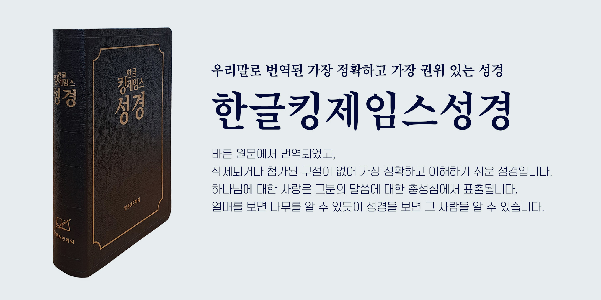 <한글킹제임스성경>은 우리말로 번역된 가장 정확하고 가장 권위 있는 성경입니다. 바른 원문에서 번역되었고, 삭제되거나 첨가된 구절이 없어 가장 정확하고 이해하기 쉬운 성경입니다.